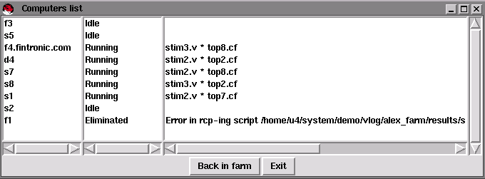 well as the activity/status of each computer on the farm. The status of