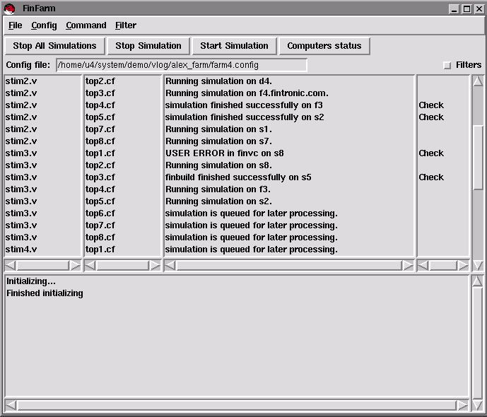 with a real time report on the status of each individual simulation as